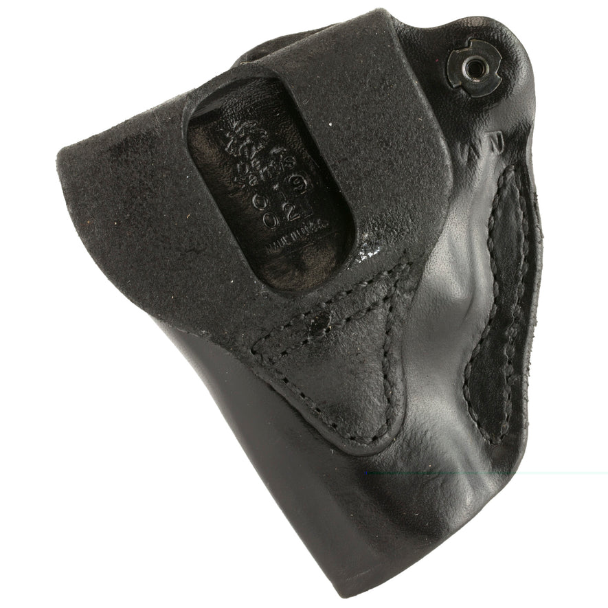 This unique holster has been reduced to the barest of essentials yet offers a secure grip on the handgun thanks to exact molding and adjustable tension device. The Mini Scabbard(R) will accommodate belts up to 1 3/4" wide. Available in black or tan unlined leather. Note: Some models without adjustable tension device.