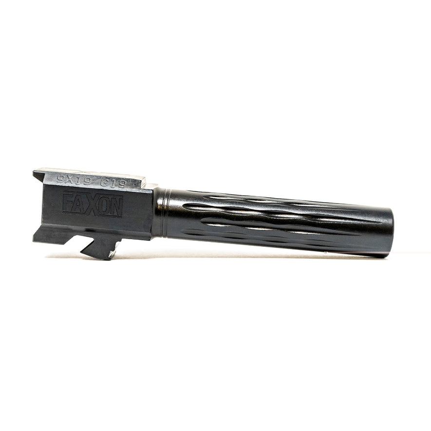 Faxons Match Series Pistol Barrels for G19 / Glock 19 are machined 100 percent in-house from stress-relieved 416-R stainless steel. These barrels are then given a black Nitride or PVD coating to increase lubricity, barrel life, and resistance to surface wear. All barrels are conventionally rifled to allow a wider range of ammunition to be used, including cast lead. The barrels drop into factory-spec slides with no gunsmithing required. Better-than-factory tolerances ensure a consistent, tighter lockup than OEM.