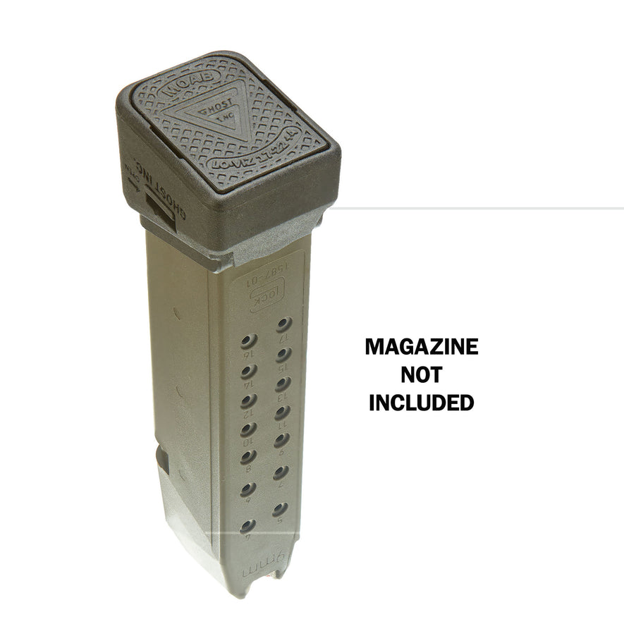 The Ghost Inc. Mother of All Baseplates (MOAB) has been designed to enhance your shooting experience. With its extra power magazine spring, rounded ergo design, positive magazine seating, and extraction traction points, youll notice the difference the MOAB makes right away. The MOAB LoViz is designed for concealed carry, featuring a lower profile for deeper concealment.
