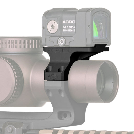 The ROF-90 is a drop-in upgrade for the Reptilia AUS Mount or Geissele Super Precision 34mm magnified optic mounts. The ROF-90 adds options for close-in target engagement and passive aiming with night vision. The ROF-90 for an Aimpoint ACRO or Steiner MPS at 90 (12:00) to add a close-range optic to your magnified scope. Additionally, the ACRO or MPS can be zeroed for use with use with subsonic cartridges such as 300 AAC Blackout, while allocating the magnified optic for use with supersonic ammunition.